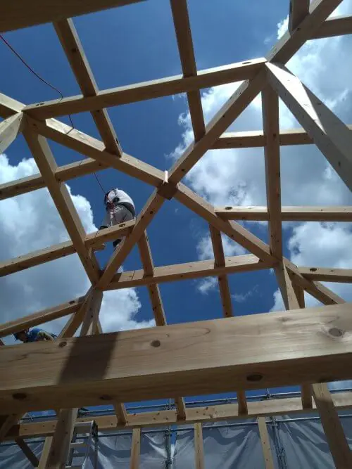 2023年8月5日 / 最終更新日時 : 2023年8月5日 gotokota 1900 祝。上棟。 1900プロジェクトがついに上棟しました。 暑い日でしたが大工さん達のチームワークで上棟する事が出来ました。 工事の大一番といったところです。 これからいろんな業者さんが入っていよいよ家を完成させます。 構造のみの美しい形から青い空が見えます。 コメントを残す コメントをキャンセルコメントを投稿するにはログインしてください。