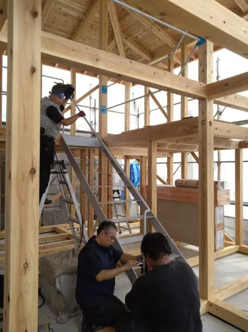 2023年8月11日 / 最終更新日時 : 2023年8月11日 gotokota 1900 スチール階段 上棟後早速階段の取り付けです。 今回はスチール階段で考えました。鉄なので階段といえどもかなりの重さです。 鍛冶屋さんと大工さんの力も借りて所定の位置にセッティングしました。 その後手摺も溶接して完了です。 スチール階段。錆止め塗料のグレー色ですが、その後白に塗装する予定です。 コメントを残す コメントをキャンセルコメントを投稿するにはログインしてください。