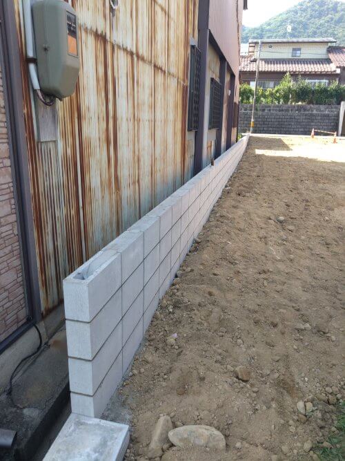 目地のない型枠ブロックも検討しましたが、コストを考え普通のブロックとしました。