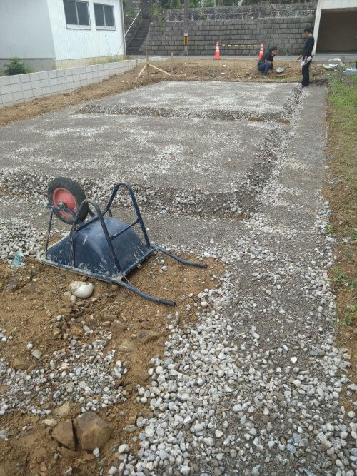ビニールシート、捨てコンを打っていよいよ基礎工事に入ります。