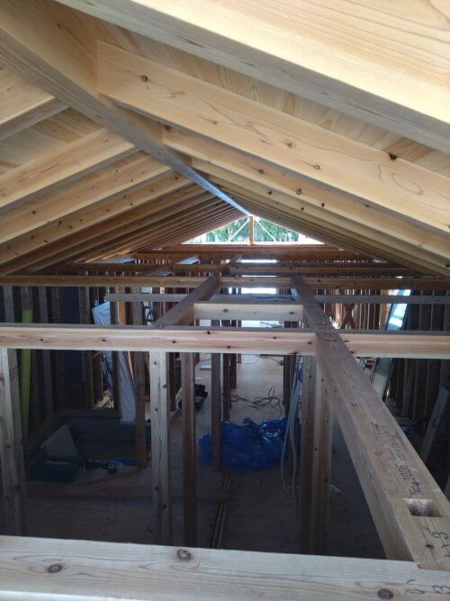 2025年10月17日 / 最終更新日時 : 2025年10月17日 gotokota 建築 無柱空間 棟木(家の一番上の屋根を支える梁)が柱に支えられる事なくまっすぐ伸びています。 住んでみるとなかなかこの角度から見れないので。ガラス寸法をとるついでに。 美しいですね。 コメントを残す コメントをキャンセルコメントを投稿するにはログインしてください。