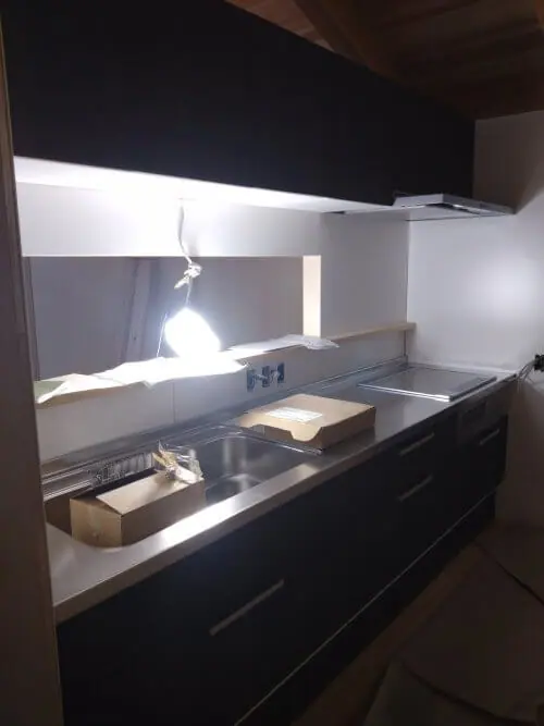 2025年11月30日 / 最終更新日時 : 2025年11月30日 gotokota 建築 キッチン工事 キッチンが付きました。 クリナップラクエラ。間口2700。 取り付けは大工さんと二人で行いました。 びっくりなのがこの価格。 水栓 IH 吊戸棚 換気扇まで付けて、 お値段なんと33万円(税込み) この建築費高騰の中、私が今まで設計したキッチンの中でも一番安いかもしれません。 安くても立派なキッチンです。 コメントを残す コメントをキャンセルコメントを投稿するにはログインしてください。